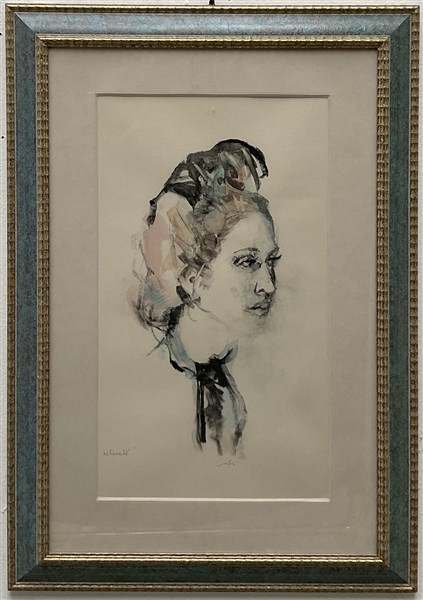 "Profilo femminile" litografia a colori con ritocchi (cm 57x33), firmata in basso al centro