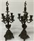 Coppia di candelabri in metallo a cinque fiamme con decori a motivi fogliacei e