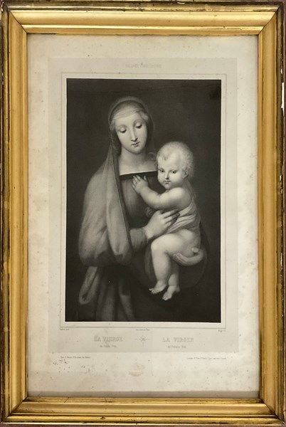 Lotto di due incisioni del secolo XIX raffiguranti una "Madonna con bambino" da