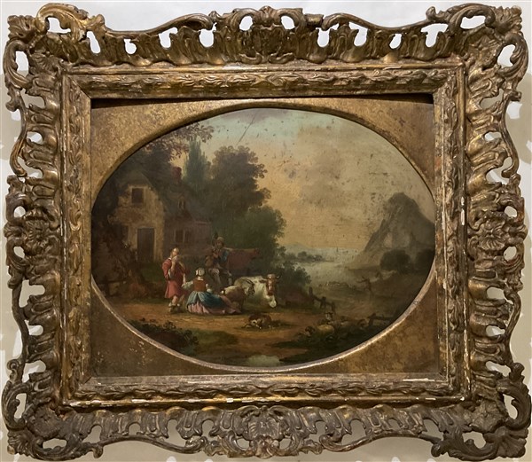 Artista del secolo XIX, Pastori con armenti, olio su tavola ovale (cm 20x269), in cornice