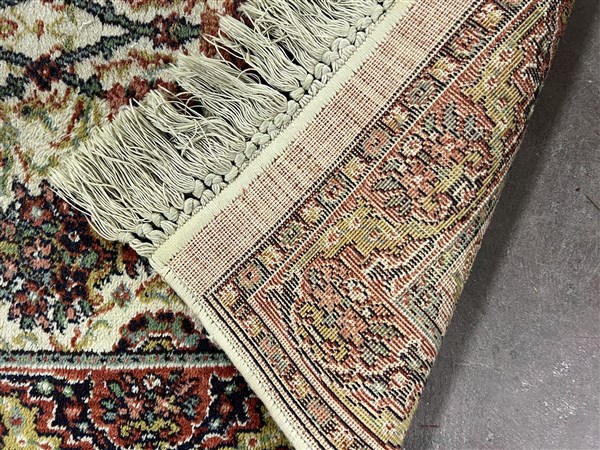 Lot 2232 | Tappeto meccanico, secolo XX. Decoro con motivi floreali all over su fondo bian