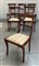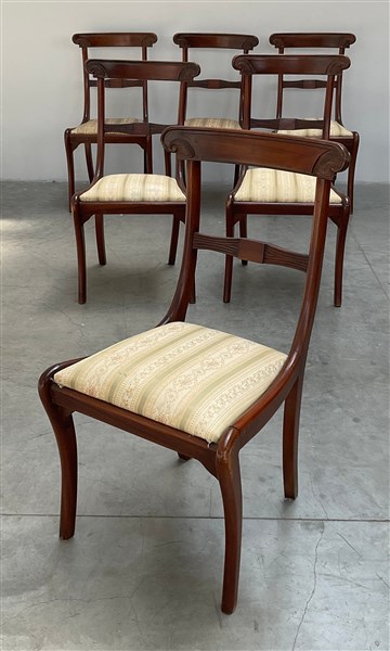 Gruppo di sei sedie in mogano di forma mossa con schienale a giorno intagliato