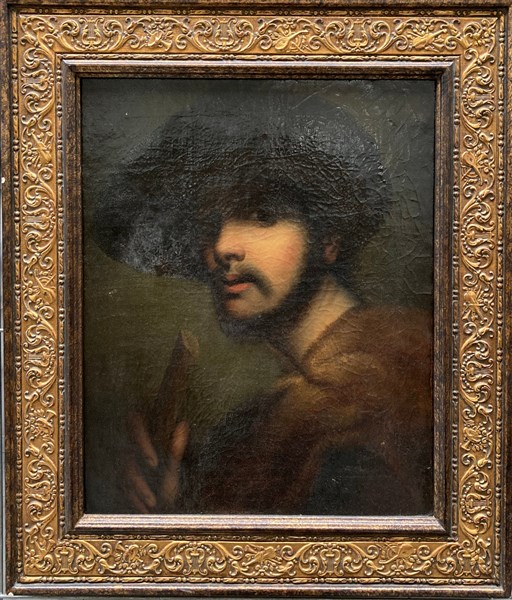 Copia da Sebastiano del Piombo, secolo XIX, Pastore con flauto, olio su tela (cm 47x38,5), in cornice