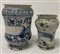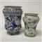 Manifatture diverse, lotto di due albarelli in maiolica e porcellana dipinti a