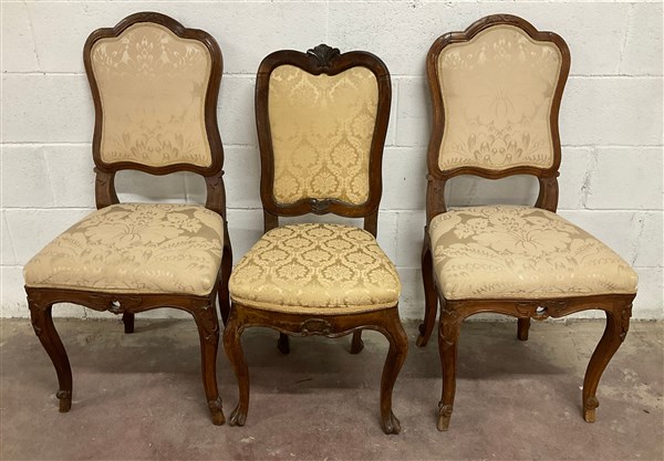 Lotto composto da una coppia di sedie ed una singola in noce del secolo XVIII (