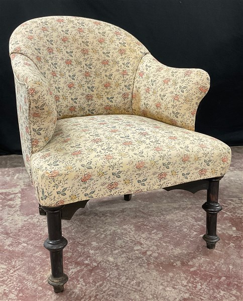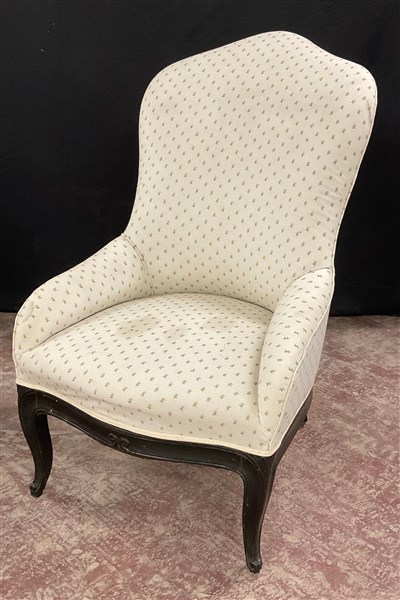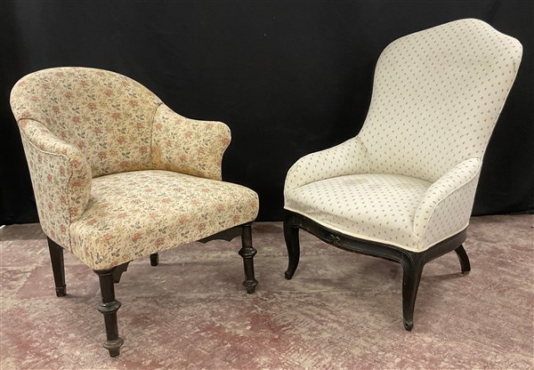Lotto di due poltrone imbottite con gambe in legno ebanizzato (difetti)
