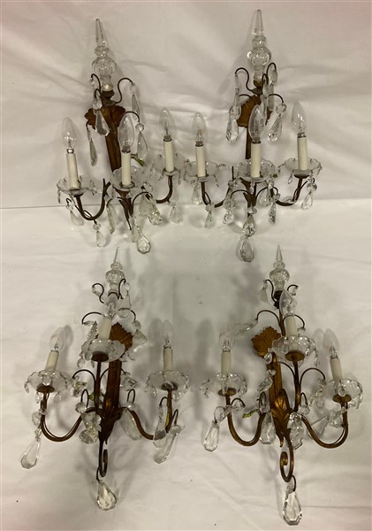 Lot 2280 | Gruppo di quattro applique a tre fiamme in metallo dorato decorate a volute fog