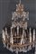 Lampadario a cesto a quindici fiamme in metallo decorato da pinnacoli, pendenti e perlinature in cristallo (cm 90x70)