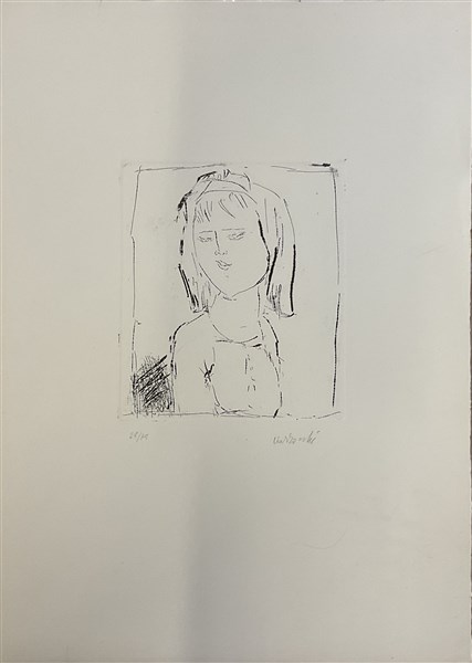Cartelletta contenente due acqueforti e una litografia raffiguranti soggetti femminili (cm 50x35) firmate e numerate in basso a matita