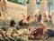 Manifattura italiana del secolo XX. Tecnica mista su tela a trama grossa, che imita il tessuto dellarazzo raffigurante gara tra cavalieri d'età classica, firmati E. Forti in basso a destra. Passpartout di Gobelin meccanico a motivi neoclassici (cm 147x101) In cornice (difetti)