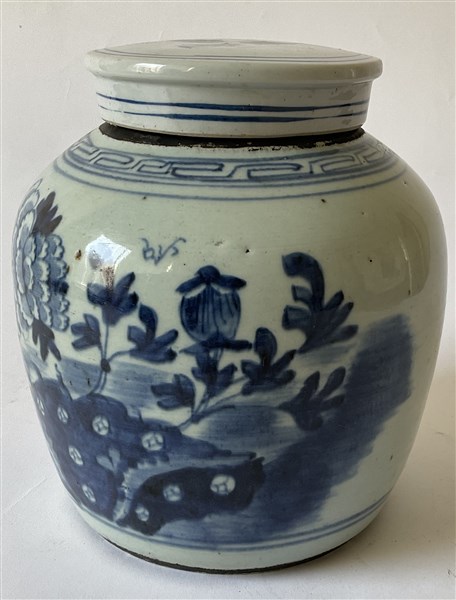 Piccola giara con coperchio in porcellana bianca e blu Cina, fine sec. XIX (h.