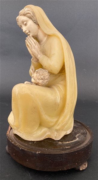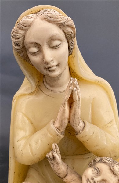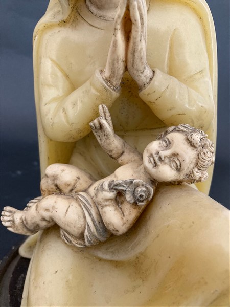 Ignoto, Madonna con Bambino, scultura in alabastro con mani, volto e Bambino in crisoelefantino (h. cm 25,5) (difetti)