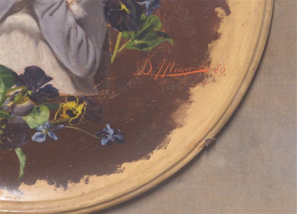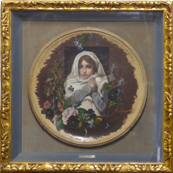 Domenico Miserocchi "Fanciulla con scialle" 1886, olio su piatto in terracotta (