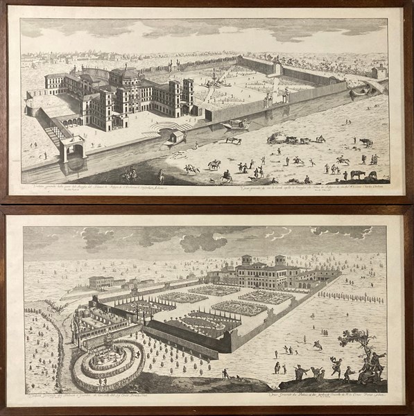Marcantonio dal Re, coppia di incisioni monocrome raffiguranti vedute di reside