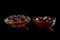 Due posaceneri in vetro sommerso nei toni del rosso verde e arancio. Secolo XX. (misure diverse) (lievi difetti)