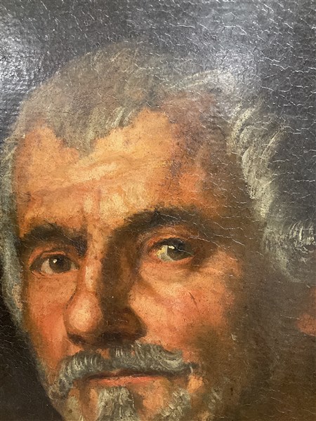 Ignoto , antico dipinto ad olio su tela raffigurante "Figura virile con calice