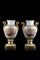Coppia di vasi biansati in porcellana decorati in policromia e dorature e fiori