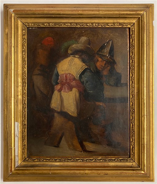 Lot 2365 | Ignoto, dipinto ad olio su tela raffigurante "Scena di genere" (cm 23,5x19) in