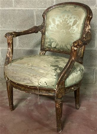 Lot 2368 | Poltroncina in legno intagliato e laccato con braccioli mossi,gambe scanalate.S