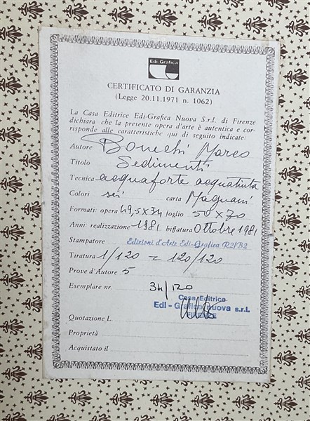 Marco Bonechi "Sedimenti" acquaforte e acquatinta (lastra cm 35x50, foglio cm 50