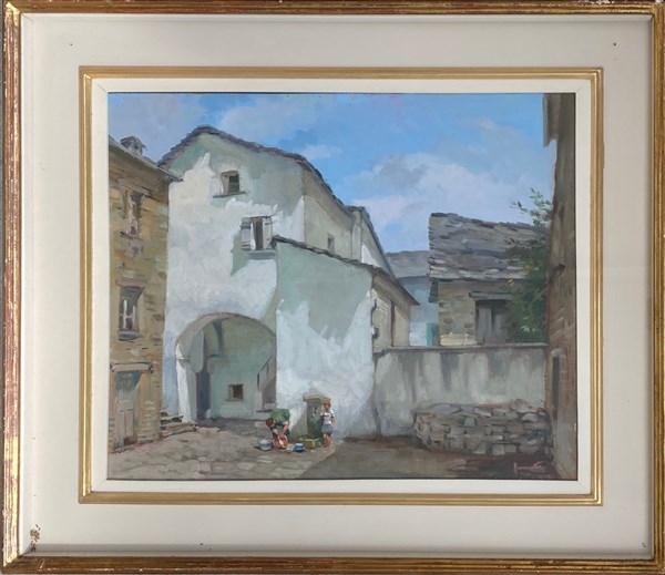 Lot 2387 | Firma indecifrata "Case a Tarsogno" olio su compensato (cm 41x49) Firmato in ba