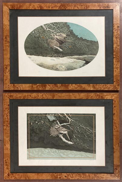 Giannini due litografie a colori raffiguranti volatili cm 48x68,5 Numerate, firm