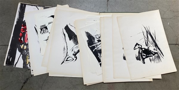 Lotto composto da due cartelle contenenti varie stampe e litografie, alcune di medesimo soggetto (circa cm 50x70) (difetti)
