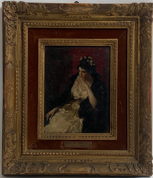 Ignoto del XIX Secolo "Ritratto di donna" olio su tela (cm 24x19) Al retro: iscrizioni. In cornice