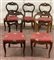 Gruppo di cinque sedie in noce con cartella sagomata, intagliata e traforata. S