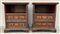 Coppia di comodini in legno intagliato con due cassetti, vano a giorno e piedi