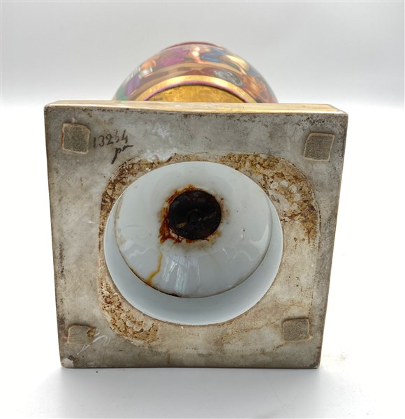 Manifattura del secolo XIX, vaso biansato in porcellana dipinta in policromia a