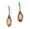 ciascuno realizzato con una monachella decorata da un brillante di taglio vecchio a cui è sospeso, tramite una linea di piccolissimi brillanti, una goccia in corallo rosa racchiusa entro una montatura in brillanti anch'essi di taglio vecchio, g 14