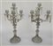 Coppia di candelabri a quattro fiamme in vetro con pendenti in cristallo sfacce