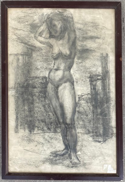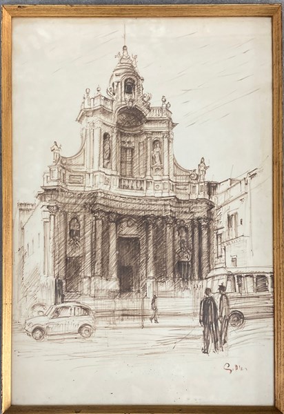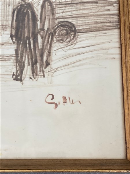Lotto composto da due disegni di soggetti, autore e misure differenti (misura max cm 69x49), uno firmato, in cornici (difetti)