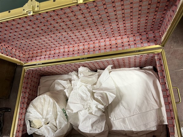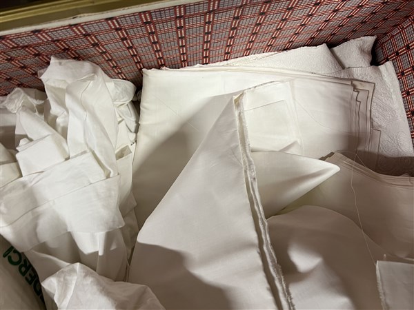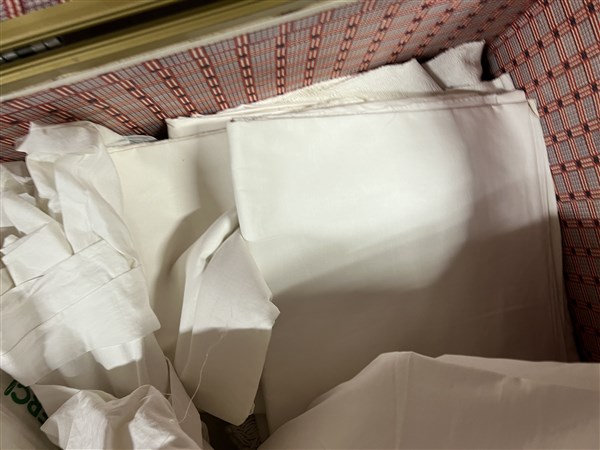 Tre bauli contenenti stoffe di varie fogge e dimensioni (difetti)