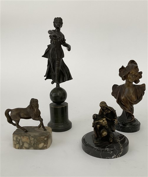 Lotto composto da quattro bronzi di epoche e soggetti differenti (difetti)