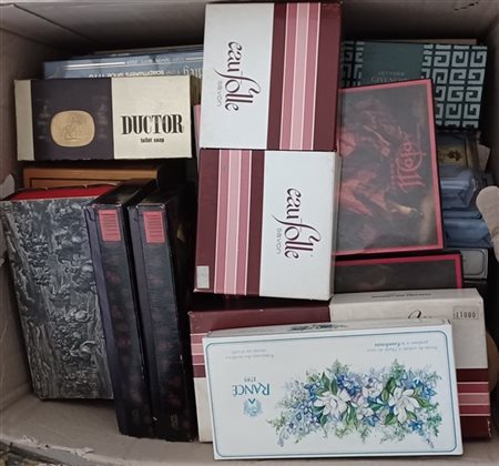 Lotto composto da svariate confezioni di saponi da uomo e da donna, molte sigillate, di diverse epoche