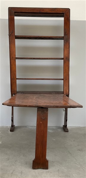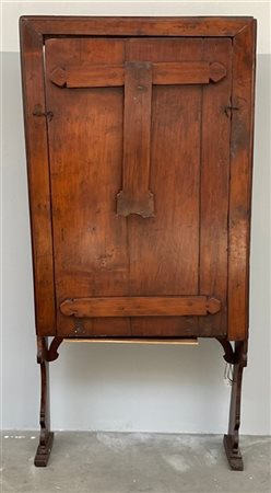 Tavolo da parete con piano apribile, piedi a cavalletto riuniti da traversa (difetti)