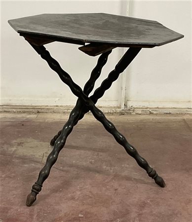 Tavolino da salotto di forma ottagonale poggiante su gambe tornite (cm 60x60) (difetti)