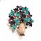 Spilla in oro giallo, corallo, rubini, zaffiri, smeraldi, diamanti e smalti