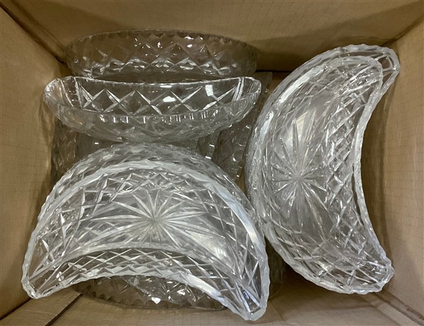 Cartone contenente numerose antipastiere in cristallo (difetti)