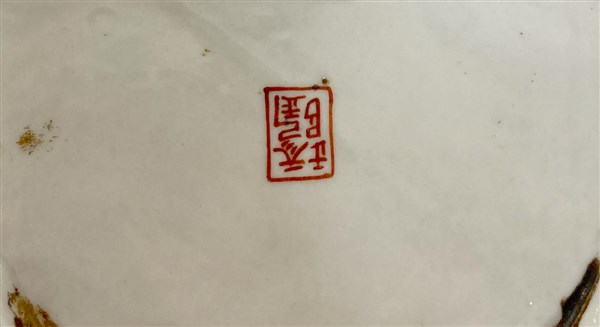 Lanterna in porcellana policroma decorata a figure e motivi vegetali, presa del