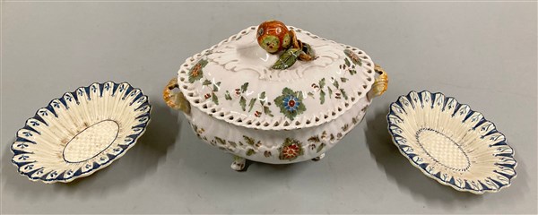 Lotto composto da una zuppiera in maiolica di manifattura bolognese del secolo