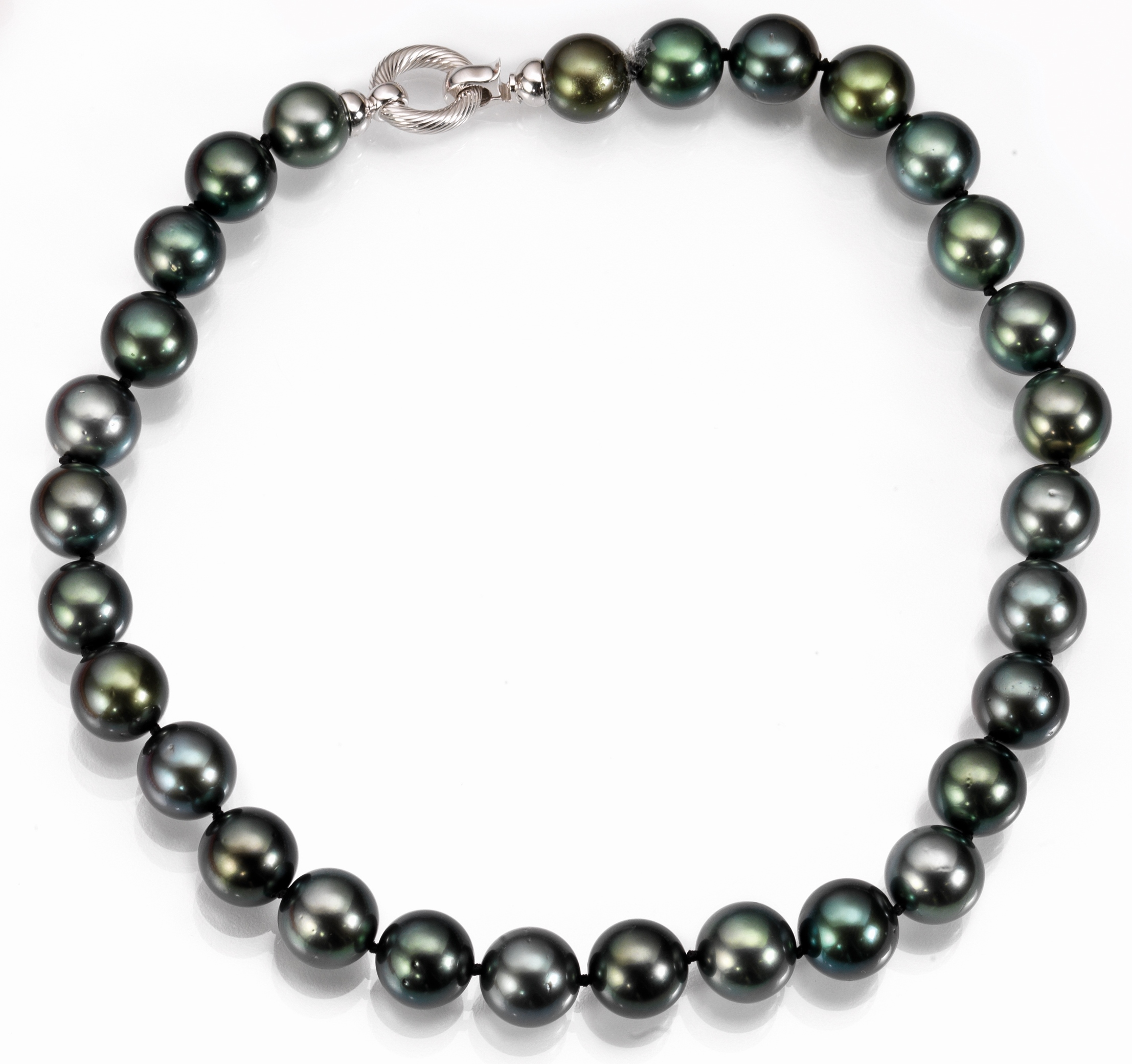 Collana in perle Tahiti, oro bianco 14 kt e diamanti