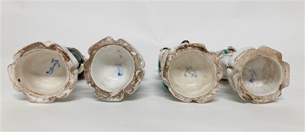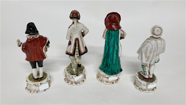 Manifattura veneta "Maschere della Commedia dell' Arte" gruppo di quattro figure in porcellana policroma (h. max cm 16) (mancanze e restauri)
