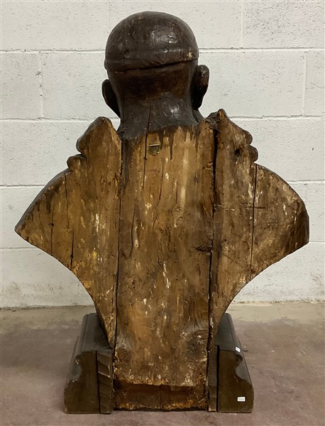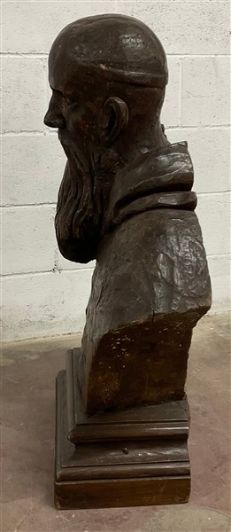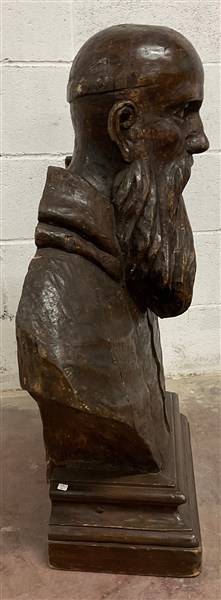 Busto in legno intagliato raffigurante Frate, su base a plinto (h cm 88) (difetti)