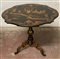 Tavolino a vela in legno ebanizzato con piano di forma sagomata decorato a chin