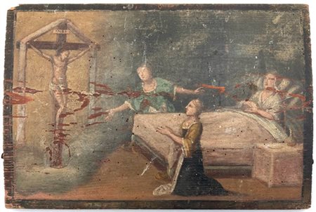 Ex-Voto raffigurante Crocifissione. Secolo XIX (cm 35x24x2) (difetti, mancanze)