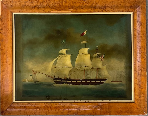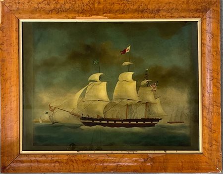 Stampa a colori applicata su vetro raffigurante un galeone (cm 50x73) In cornic