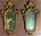 Coppia di specchiere in legno intagliato e dorato a volute e motivi floreali, c